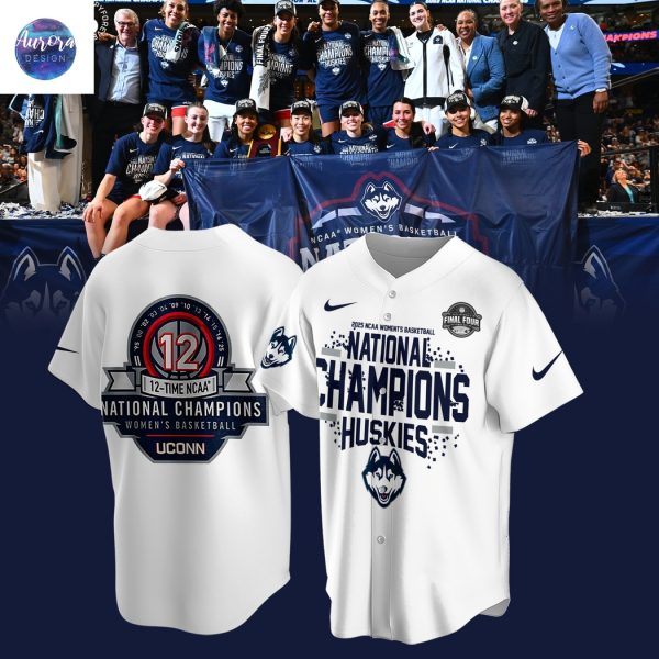 12 Times UConn Huskies 2025 NCAA Womens Basketball National Champions Baseball Jersey – White Information: